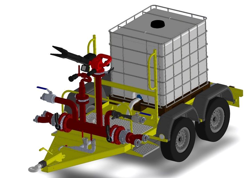 Установка базируется на мобильной платформе (прицепе) способной транспортироваться различными видами легковой и/или грузовой техники. Платформа оборудована площадкой для размещения заводских емкостей для пенообразователя (кубов) с возможностью их оперативной замены непосредственно на месте чрезвычайной ситуации, водопенными коммуникациями, трубопроводами и запорно-регулирующей арматурой, необходимыми для работы установки, а также осветительными приборами, отсеками для размещения аварийно-спасательного инструмента и пожарно-технического вооружения.